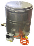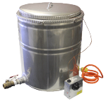 This Stainless Steel Soap Melter is a double boiler measuring 23" high and 19" in diameter. This tank holds about 15 gallons of liquid and comes equipped with 1" flange. It is supplied with a cover, ball valve, an electric 110-volt immersion heater, adjustable thermostat, thermometer and a water reservoir. This is the perfect addition to your soap making operation.