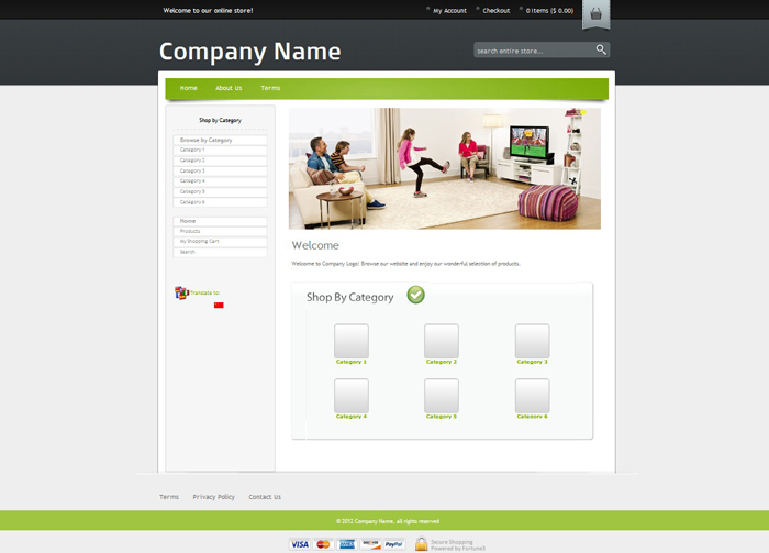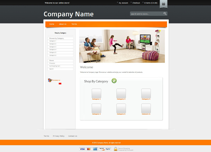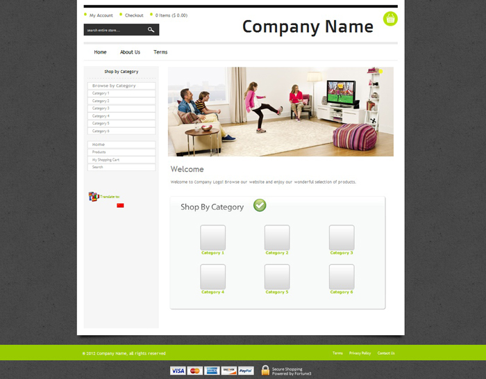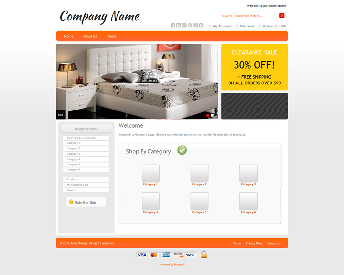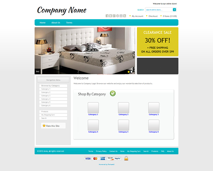 The Fortune3 Wizard and Shopping Cart Software comes with the following list of design templates for free. When you create and manage your online store with our shopping cart software, you will be able to select any of the templates listed below to use with your shopping cart website.