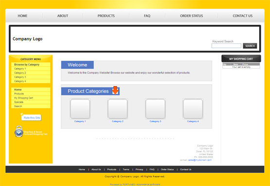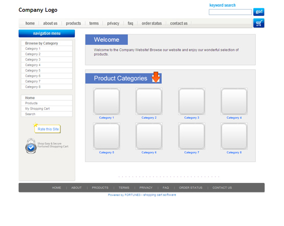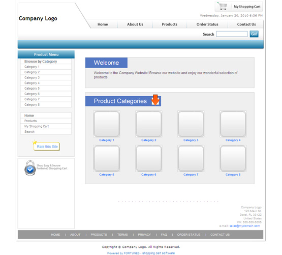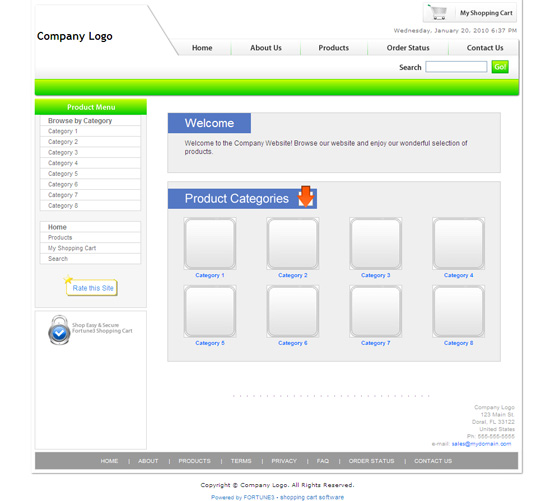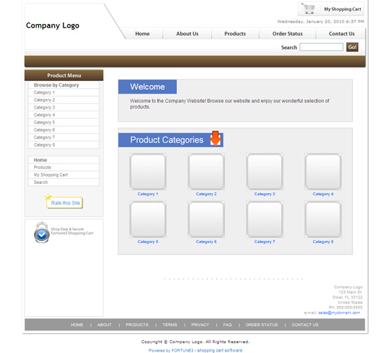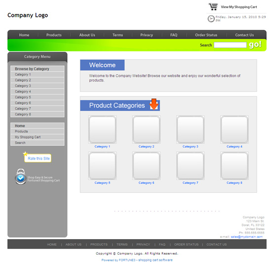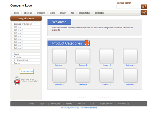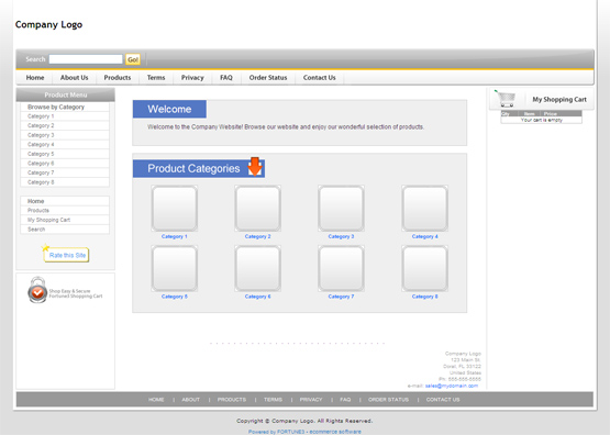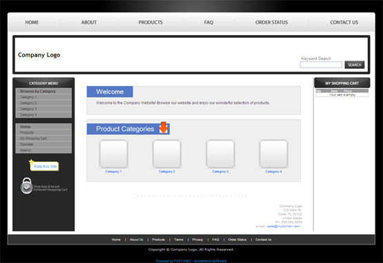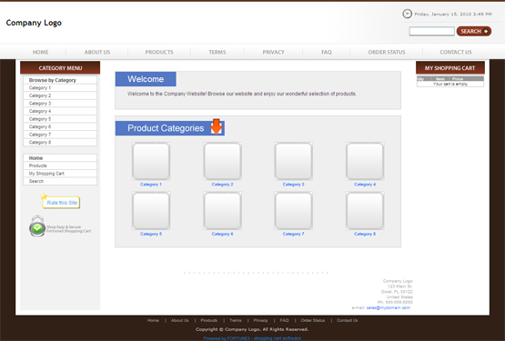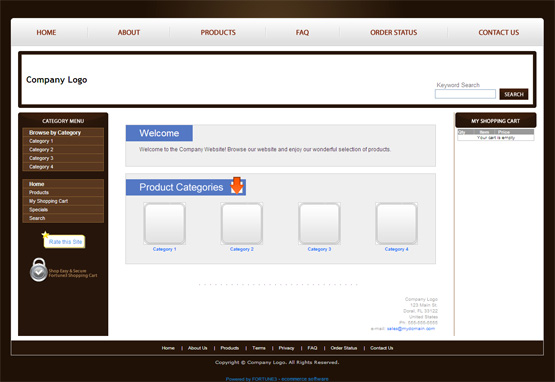 The FORTUNE3 Wizard and Shopping Cart Software comes with the following list of design templates for free. When you create and manage your online store with our shopping cart software, you will be able to select any of the templates listed below to use with your shopping cart website.