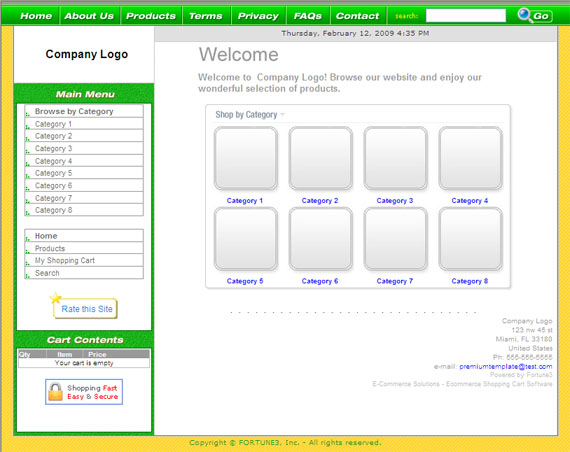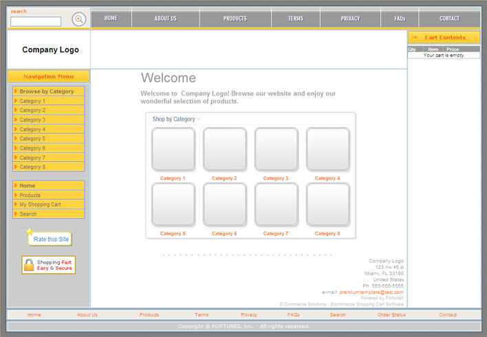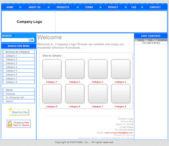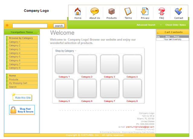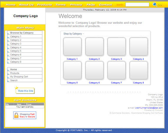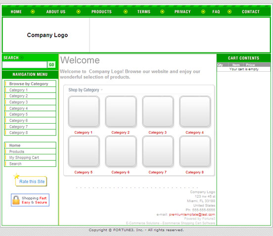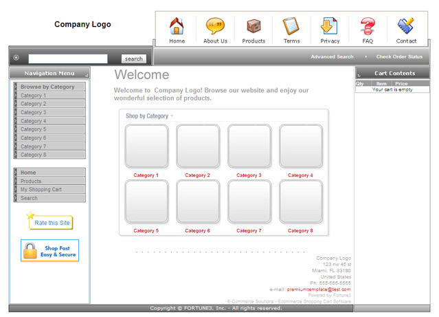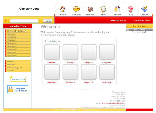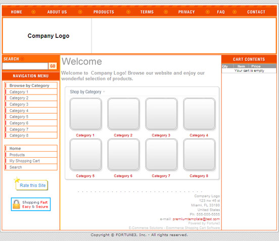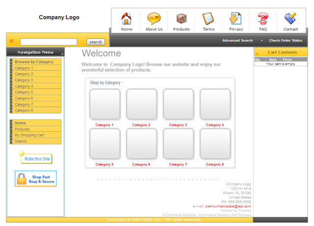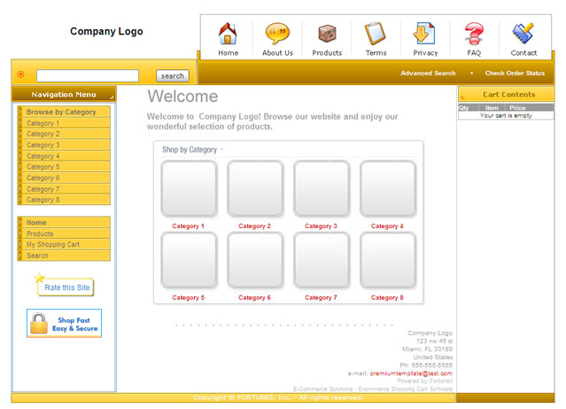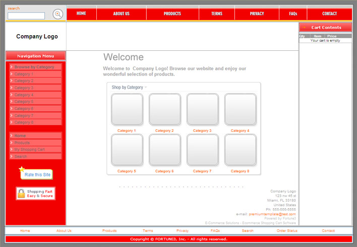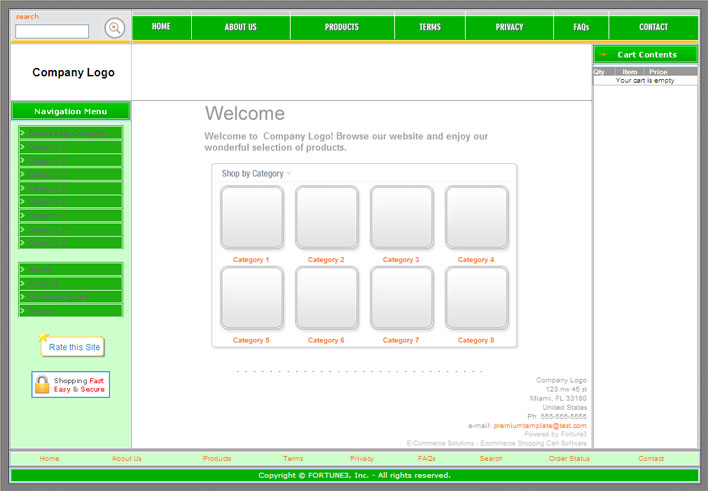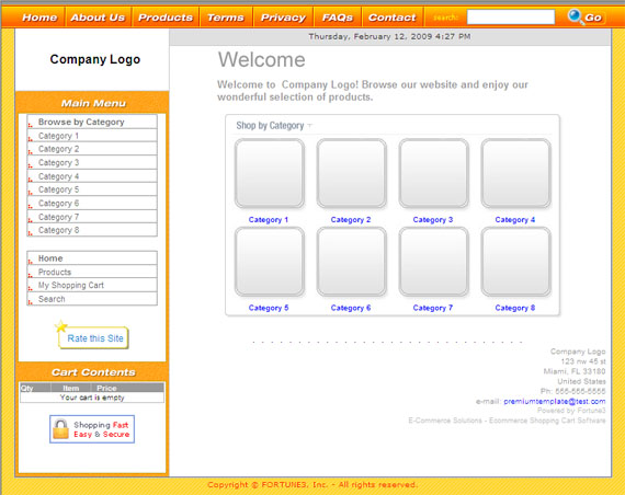 The Fortune3 Wizard and Shopping Cart Software comes with the following list of design templates for free. When you create and manage your online store with our shopping cart software, you will be able to select any of the templates listed below to use with your shopping cart website.