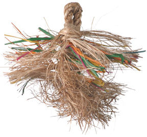 This toy is uniquely designed for hours of preening and chewing enjoyment for birds that are pluckers and overpreeners. Not only is this an exciting toy, it is also a snuggle buddy for your bird and can be easily transformed into a foraging toy! Try hiding some seeds and small nuts inside of the fibers for your bird to discover!