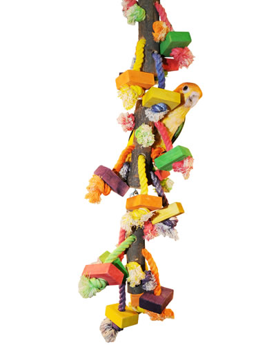 Hanging Wooden Blocks On Rope-Happy Beaks dimensions: 23" length x 4-1/2" width (Recommended for medium sized birds)