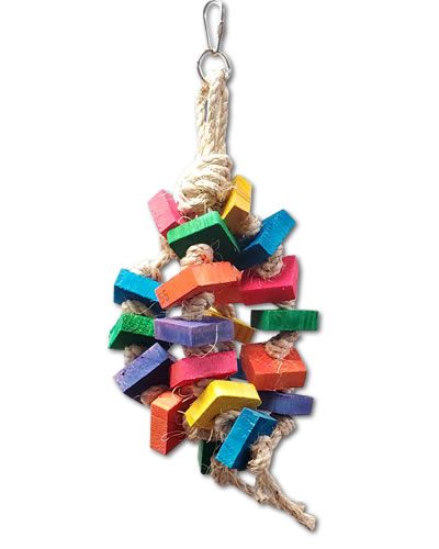 Wood & Sisal bird to features colorful wood knotted on (non-oil) sisal rope. This toy is sure to be fun for your feathered friend!