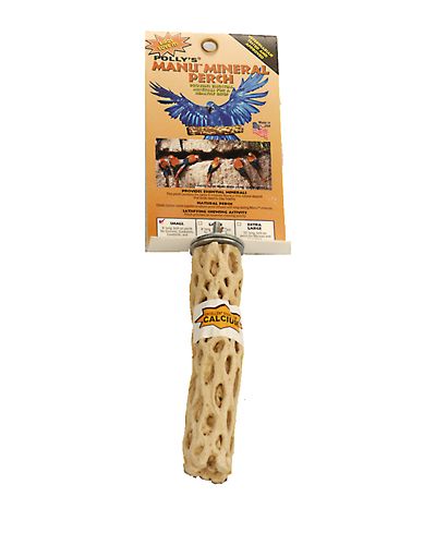The small Polly's Manu Natural Perch contains the same minerals found in the Manu River's natural mineral-rich clay where wild parrots flock in South America. Just like birds in the wild, pet birds need the unique blend of the nine minerals this bird perch contains.