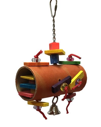 Happy Beaks Foraging Tube bird toy is chock full of colorful toy pieces, a chewable and shreddable cardboard barrel and wood pieces inside of it for your bird to discover! What more could a bird want?
