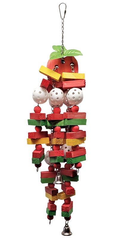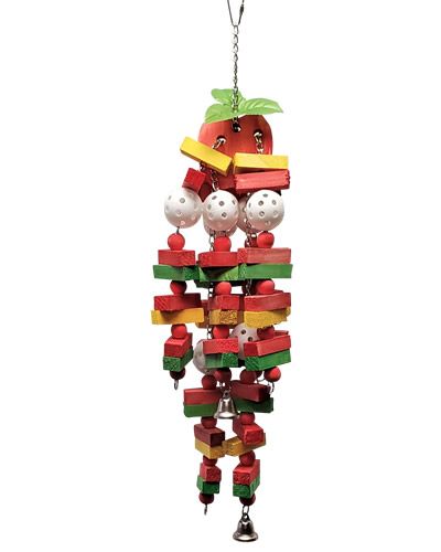This brightly colored large apple bird toy is a big hit! Chewable wood blocks and balls make this toy great for chewing and the movement this toy makes will keep your bird intrigued.