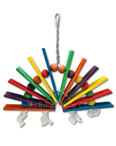 Happy Beaks over the rainbow bird toy has brightly colored wood slats seperated by wood beads that makes this bird toy stand out