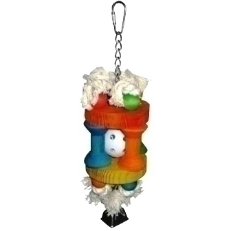 Platic Ball In Solitude has Lots of wood, plastic ball & cow bell strung with strong cotton rope make up this fun toy!