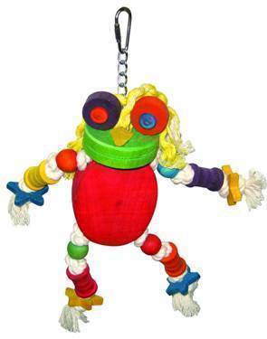 Wooden stars, spools, circles, balls and cotton rope all come together to make a unique new friend for your bird.