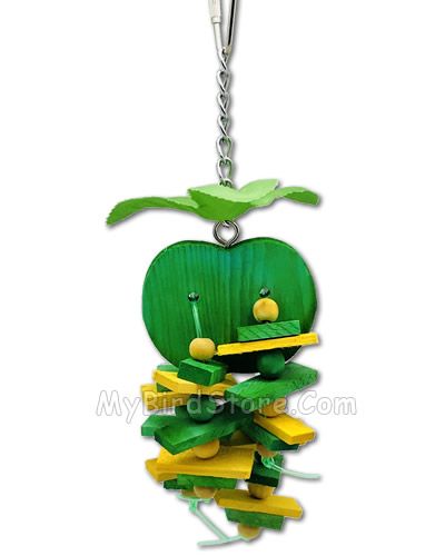 Happy Beaks small apple colored bird toy is a big hit! Chewable wood blocks and balls make this toy great for chewing and the movement this toy makes will keep your bird intrigued.
