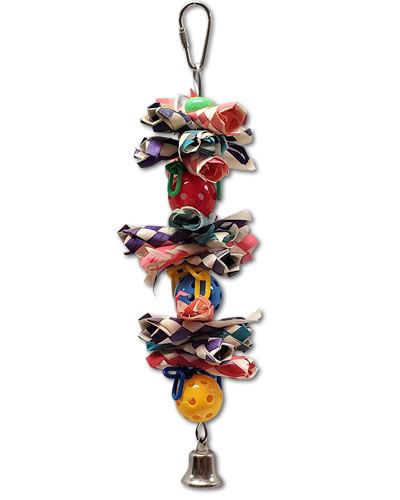 Birds love finger traps! This exciting toy has finger traps that are skewered on wire with plastic balls and chain . A jingly bell finishes off this great shredding toy. Stuff some small treats in the ends of the finger traps and you've now turned this toy into a foraging opportunity.