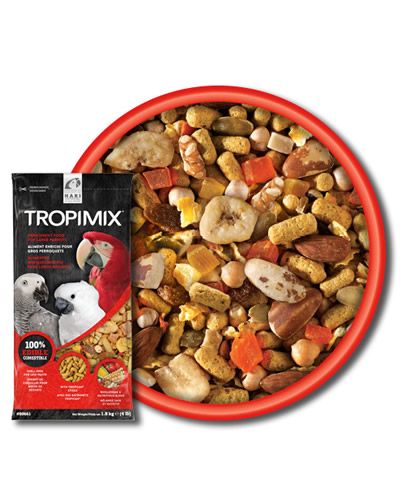 Hari - Hagen TropiMix Large Parrot Mix is a natural blend of favorite grains(pellets), legumes, nuts, fruits, and vegetables. It is appetizing for your bird and nutritious. The food is completely edible and contains no wasteful shells.