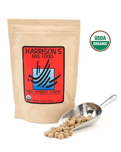 Harrison's bird food High Potency Coarse is recommended for Amazons, Cockatoos, Eclectus, Macaws, and Pionus. Harrison's High Potency Coarse should be used as a year round diet. Harrison's High Potency Course is the largest nugget size. Harrison's Bird Food provides proper organic nutrition for your bird's lifetime care. Harrison's Bird Food was created by avian veterinarians and nutritionists with the health of your bird in mind. Harrison's Bird Food formulas require little or no supplementation. All Harrison's Bird Food is a daily diet for maintaining healthy adult companion birds. The true natural, nutty flavor of the organic ingredients , along with the crunchy texture of Harrison's Bird Food are what birds really go for.