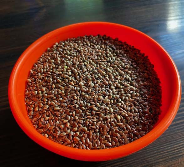 Organic flax seeds, organic hemp seeds and organic chia seeds.