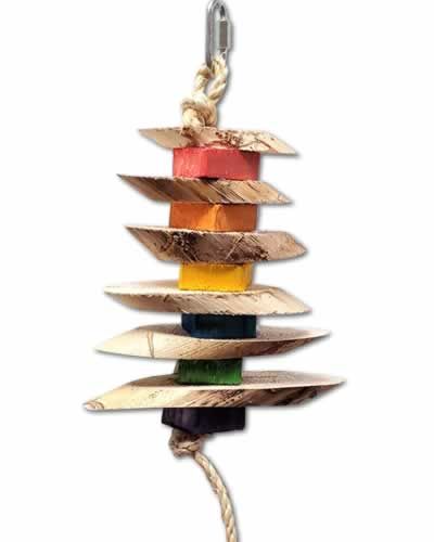 Jungle toys Sidewinder bird toy is built to withstand a tough beak! There are 6 large pieces of Yucca wood alternating with 6 wood blocks all strung on natural sisal rope. .