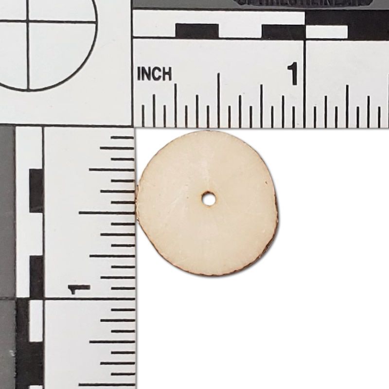 3/4" Diameter x 1/8" Thickness with a 1/8" hole. (Due to being a natural product sizes vary)