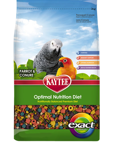 Kaytee Exact Rainbow Parrot/Conure combines the highest quality ingredients with necessary nutrients to produce an enticing rainbow of colors and shapes specifically made for your bird's specific needs. Each nugget contains “exact nutrition” ensuring your birds get exactly the right nutrition to produce better feathering, brighter colors, and maintain excellent health. No shells or hulls, means there will be less mess in and around the cage and more time for you to enjoy your bird’s company. The crunchy texture and fruity flavor is preferred by birds.