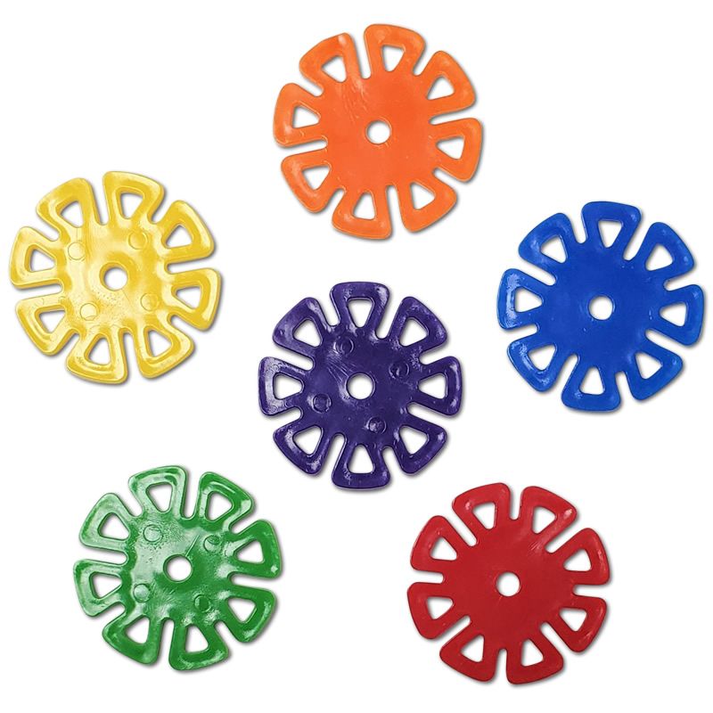 1-1/2 small wheel. Can be used as a base to add multiple dangling parts. Assorted Colors. 1-1/2" Diameter (4mm hole)