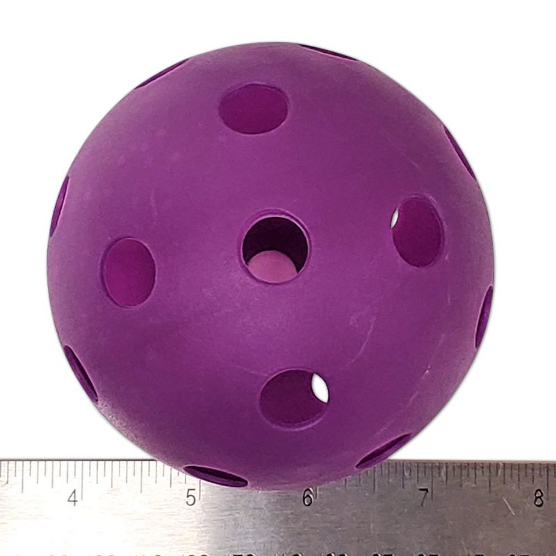 3-1/2" plastic softball bird toy part. Assorted Colors. dimensions is 3-1/2" circumference with 1/2" holes.