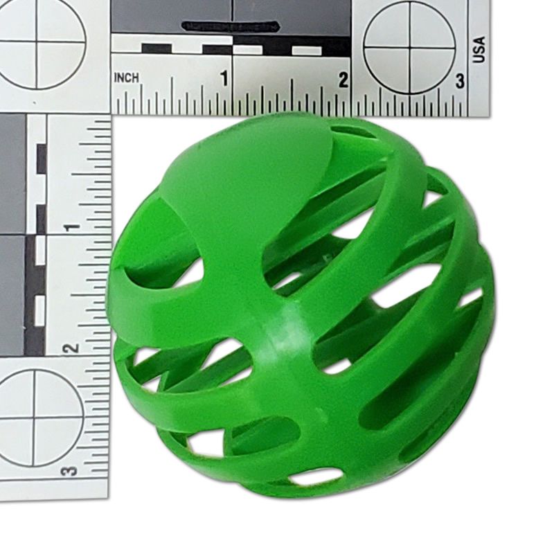 3" Plastic Waffle ball bird toy part that can be stuffed with crinkle paper or foraging treats. Assorted Colors. Dimensions is 3" circumference.