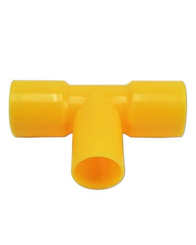 Plastic three way connector bird toy part. Assorted Colors. 5/8" inner male diameter and 3/4" inner female diameter.