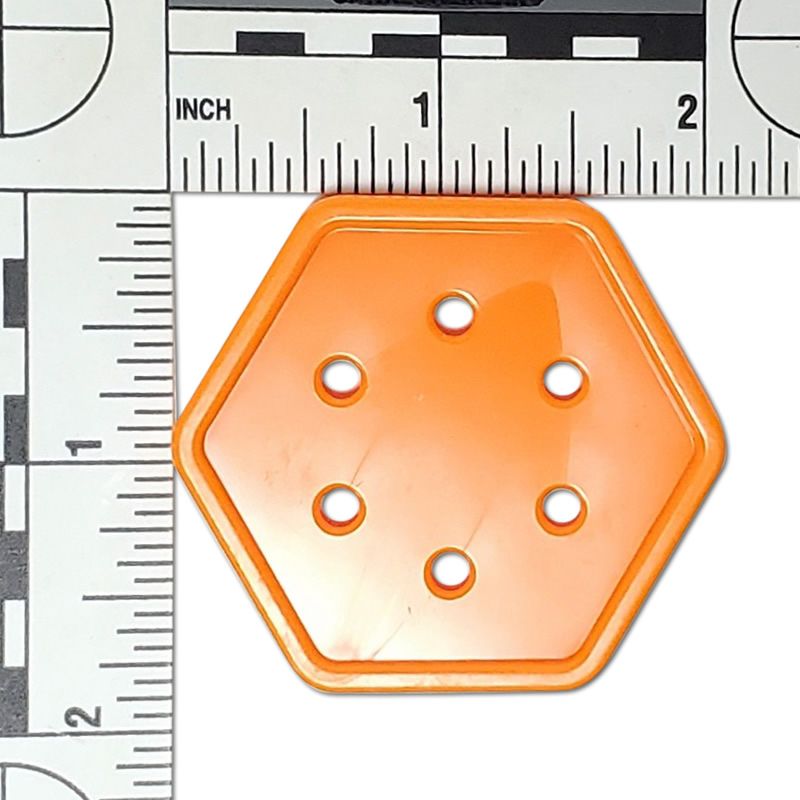 Jumbo Plastic geo button. Assorted Colors. Approximate size 3" length x 2" width x 3/16" height (1/8" hole). Sizes vary per shape