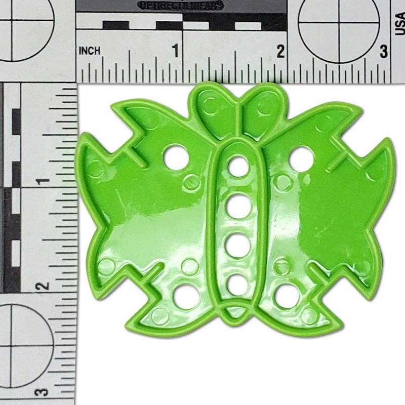 Plastic butterfly bird toy base has eight 1/4" holes. Dimensions: 2-3/8" length x 3" width x 5/16" height.