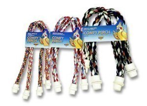 The Medium Cross Comfy Perch uniquely shapes into a "one-of-a-kind", tight knit and durable perch for your bird. It holds its shape without dangerous wires or stiffeners and has easy to use connectors to fit onto any size cage. It will help to relieve cage stress and boredom and related activities such as excessive feather picking. This perch soothes your bird's feet while providing lots of exercise for them. It is made of soft cotton, specially woven for excellent grip and features colorful, non-toxic cotton that will provide visual stimulation inside of your bird's cage.