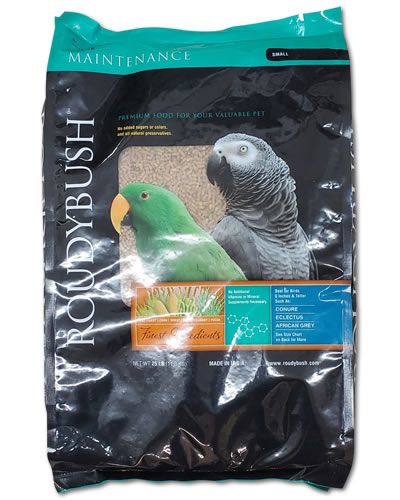 Roudybush Daily Maintenance Pellets Small are recommended for Dwarf Macaws, Small Cockatoos, Cockatiels, Lovebirds, Pionus, Conures, Lories, Rosellas, African Greys, Quakers, Amazons, and Eclectus