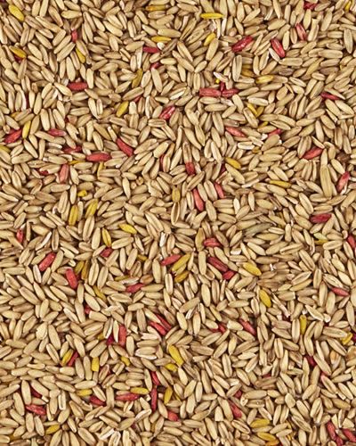 Ingredients: Oat Groats, Artificial Color. Allergen information: Manufactured in a facility that processes peanuts and other tree nuts. Guaranteed Analysis: Crude Protein (min.)....14.0% Crude Fat (min.).........5.0% Crude Fiber (max.).......3.5% Moisture (max.) ........12.0%