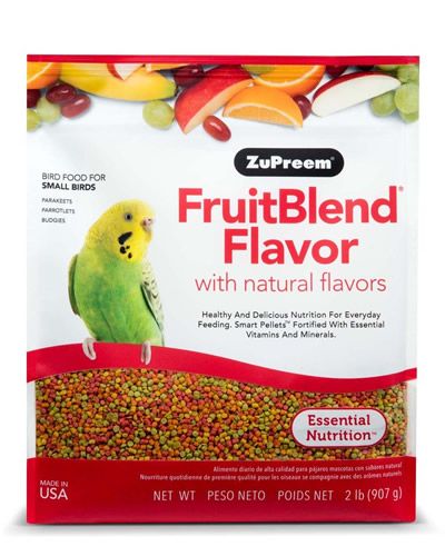 Zupreem Small Parakeet Fruit Blend has natural fruit flavors and is a premium daily bird food. It provides healthy and balanced nutrition for Parakeets, Lovebirds, Budgerigars, Parrotlets, and other very small hookbills that prefer this pellet size and contains 21 vitamins and minerals in every bite.