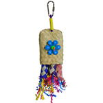 Super bird's pocket rocket bird toy is perfect for the little guys, this toy comes complete with a woven pouch filled with four finger traps stuffed with crinkle paper. Also has attached plastic flowers for some added chewing fun!