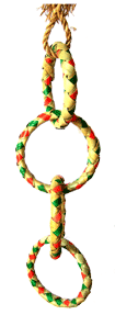 The bird toy and bird swing is made of layer after layer of natural and colorful palm leaf strands. Small birds will use the bird rings as a swing for birds and larger birds will spend hours crunching and ripping at the rings and this durable bird toy is not easily dismantled.