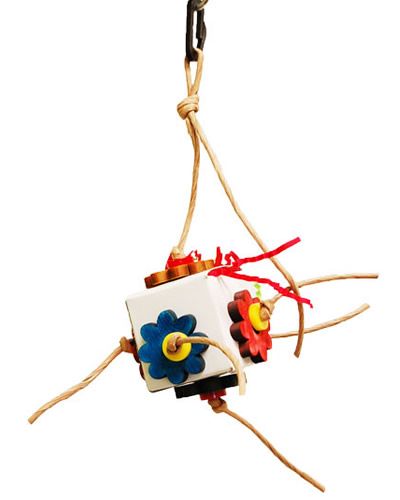 Zoo-Max Fun-Box 2" bird toy is a cardboard box full of crinkle paper, wooden stars, plastic shapes all strung together with paper twist rope. This bird toy can be used to hide your birds' favorite treats.