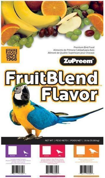 Zupreem Large Parrot Fruit Blend has natural fruit flavors and is a premium daily bird food. It provides healthy and balanced nutrition for Macaws, Cockatoos, Amazons and other large parrots that prefer this pellet size and contains 21 vitamins and minerals in every bite.